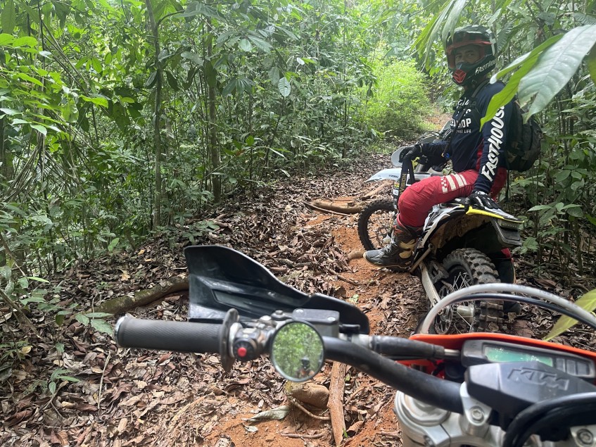 El espejo retrovisor Trail Mirror es una solución sencilla para cualquier moto de cross o de montaña. Te da visibilidad cuando la necesitas, pero de lo contrario te olvidas de que está ahí.